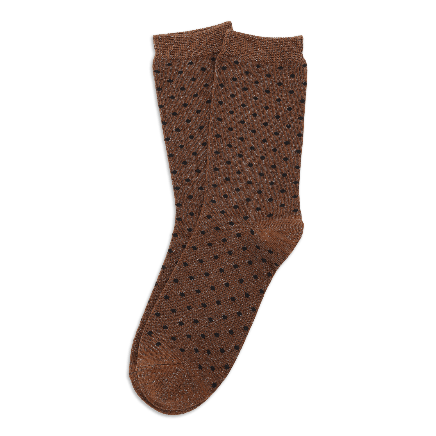 Peppermint Pop Socks er perfekte, hvis du er til de små, finurlige detaljer, der gør en forskel. Den varme brune tone kombineret med sorte prikker giver et legende og stilrent look - og så er de bløde og behagelige at have på hele dagen 🤎