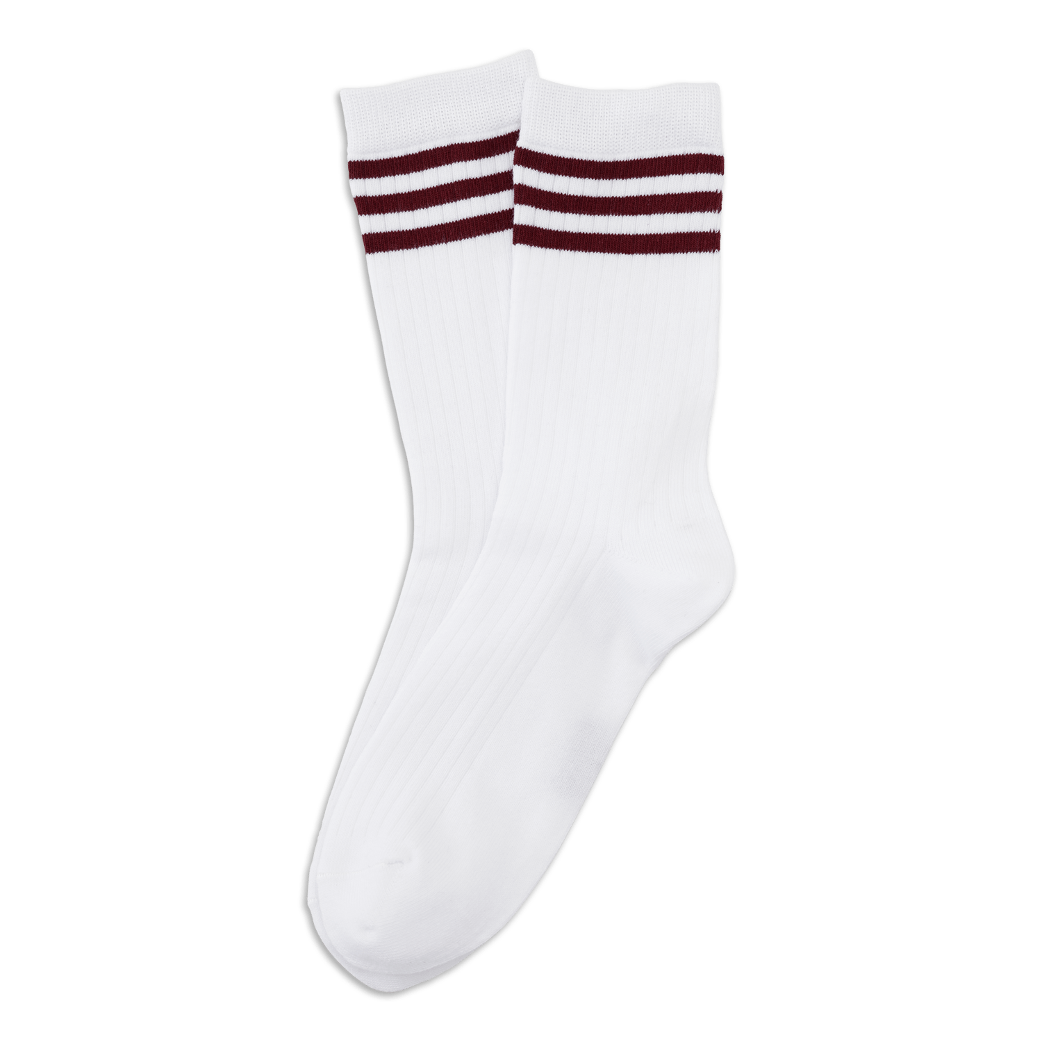 Retro Sport Stripe Socks i hvid med burgundy striber forener klassisk sportystil med behagelig komfort. Den ribbede struktur gør, at sokkerne sidder godt hele dagen, mens den dybe farvedetalje ved anklen giver et enkelt og stilsikkert udtryk. Perfekte til både hverdag og afslappede dage, hvor du vil have noget, der både føles rart og ser godt ud 🍇