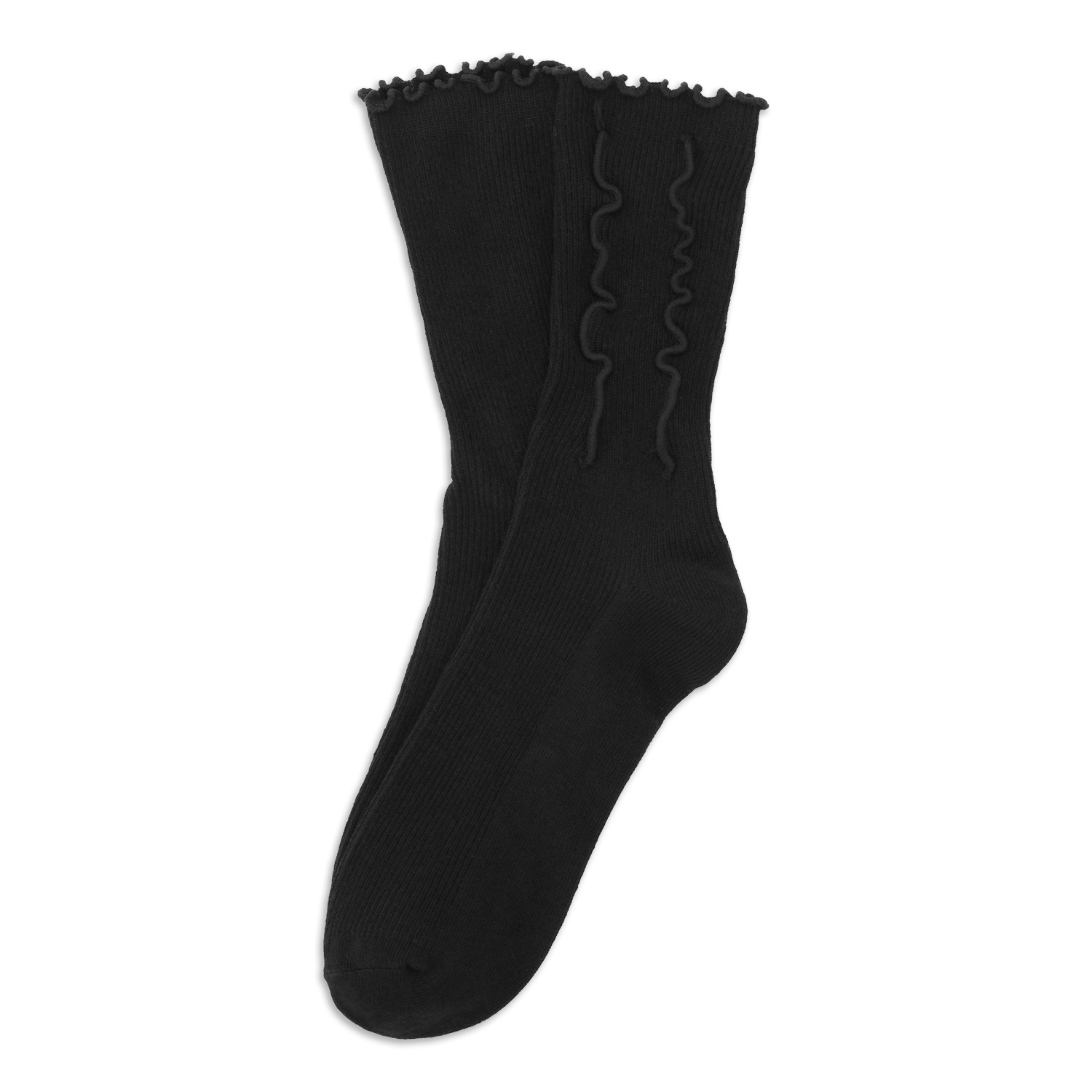 Ruffle Socks i sort er perfekte, når du vil tilføje et lille, fint twist til dit outfit. Den bløde rib og den bølgede kant giver strømperne et feminint udtryk, uden at det bliver for meget. De er behagelige at have på - både i sneakers, støvler og hjemme på sofaen 🖤
