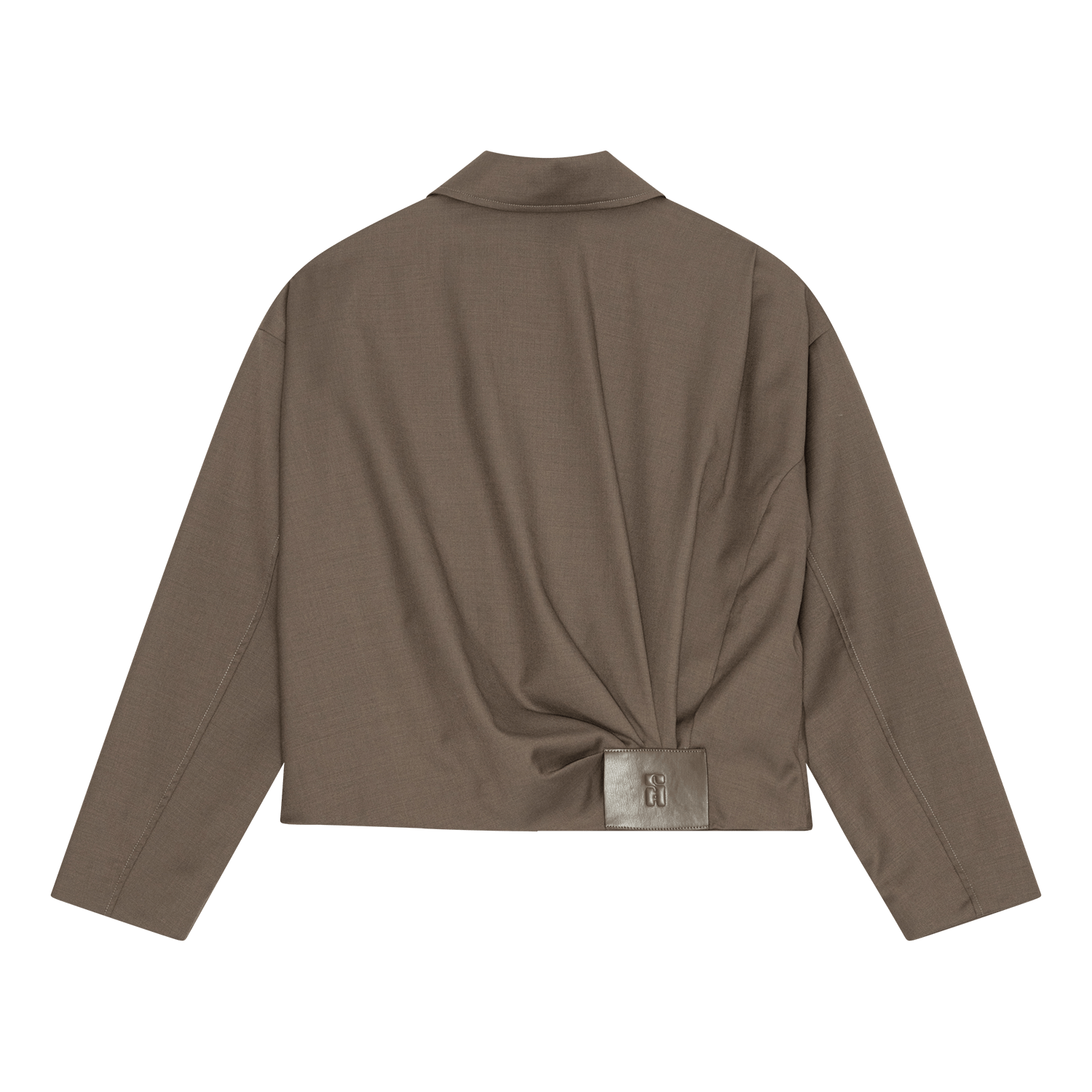 Draped Bomber Jacket er en moderne fortolkning af den klassiske bomber – med et feminint twist. Den kombinerer en struktureret silhuet med et elegant draperet detaljearbejde, der giver jakken et eksklusivt og kunstnerisk udtryk. Det asymmetriske fald bagpå samles i en diskret logodetalje, som tilfører et subtilt statement 🌫️