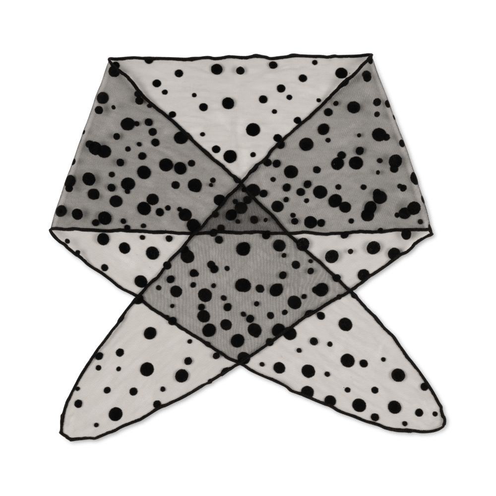 Dotty Long Scarf er et legende og stilrent tørklæde, der giver dit outfit lidt ekstra kant. Det lette, halvgennemsigtige stof og de finurlige prikker i sort på hvid baggrund skaber et grafisk udtryk, der passer til både en afslappet hverdag og et mere dressed-up look. Den aflange form gør det nemt at style på flere måder - om håret, om halsen eller på tasken 🖤