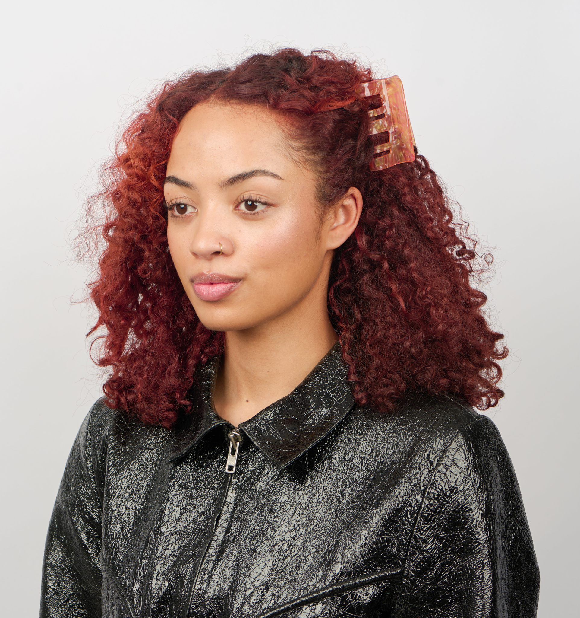 Giv dit look et farverigt energiboost med Fie 38 Degrees Big - en hårklemme, der oser af varme vibes og legende attitude. Den marmorerede orange farve skaber et blikfang i håret, mens den store størrelse sikrer et stærkt og komfortabelt greb. Perfekt til dig med tykt hår eller til opsætninger, der skal holde hele dagen - og se godt ud imens 🧡