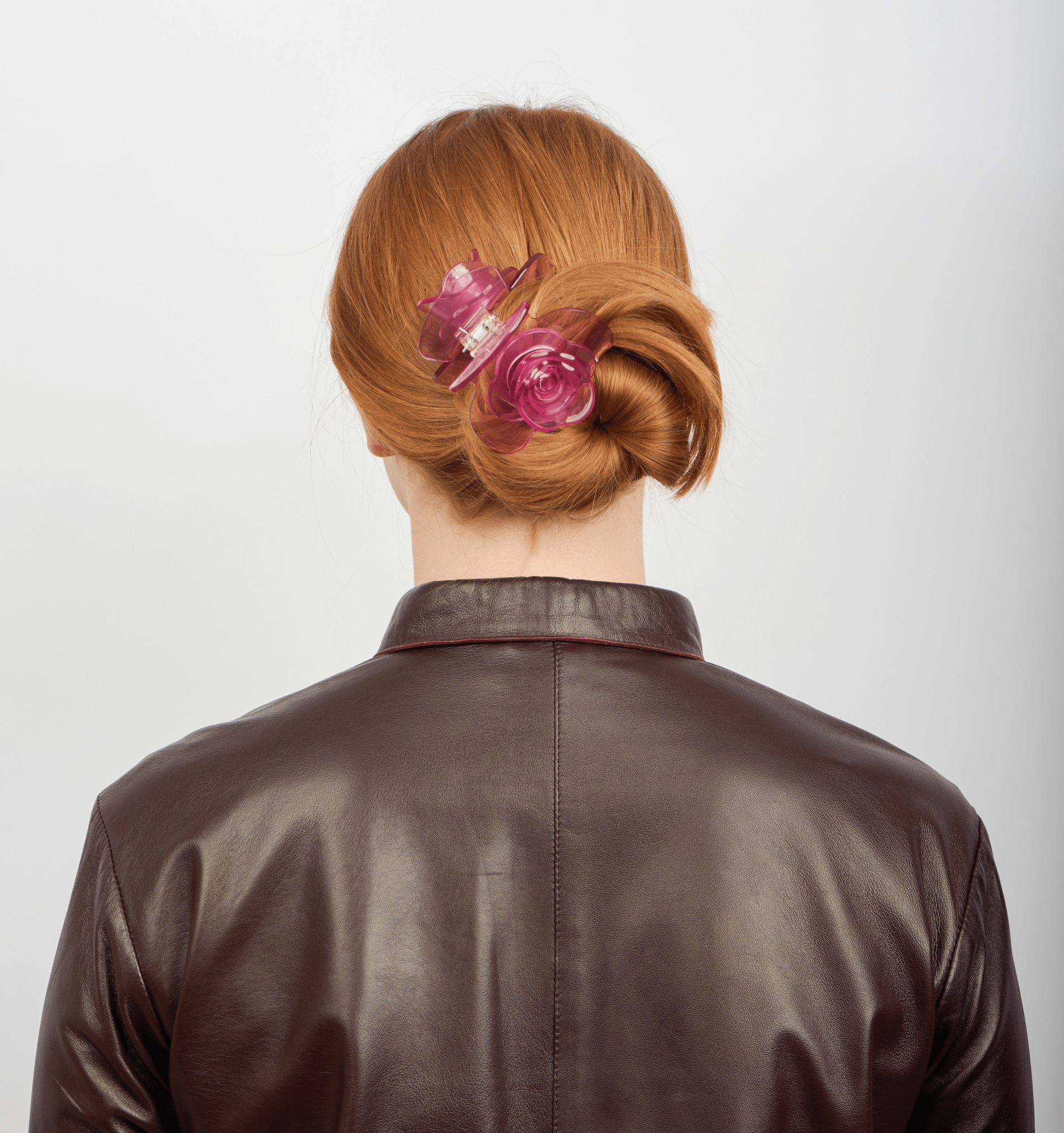 Rosie Plain Big er formet som en detaljeret rose og lavet i transparent pink acetat, der giver den et moderne og let udtryk. Den store størrelse sikrer et godt greb i håret - ideel til dig med tykkere hår eller hvis du bare vil samle håret med lidt ekstra stil 🌸