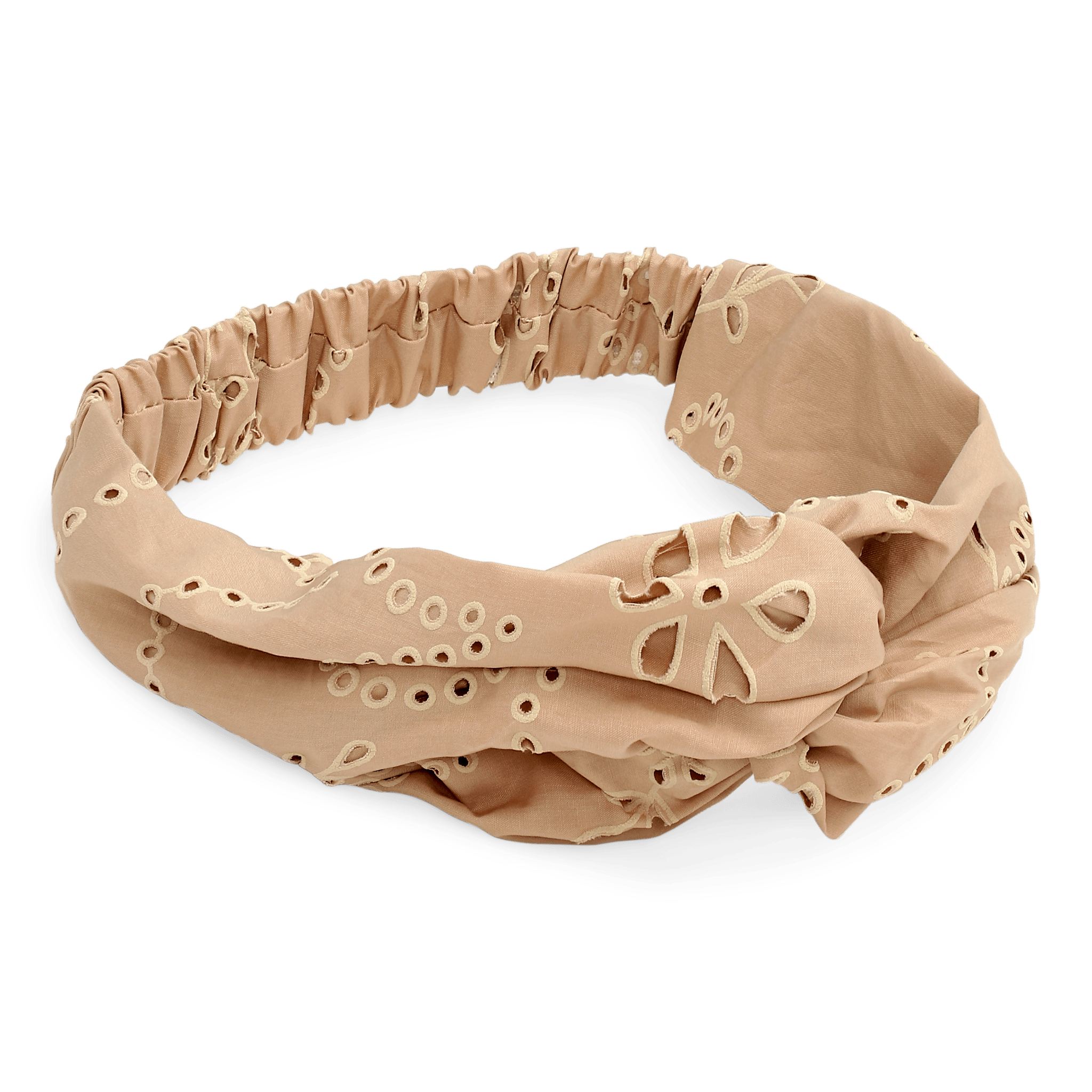 Floral Broderie Twist Headband i Salted Caramel er et vintage-inspireret hårbånd i varm brun med fine broderede detaljer 🍯🤎