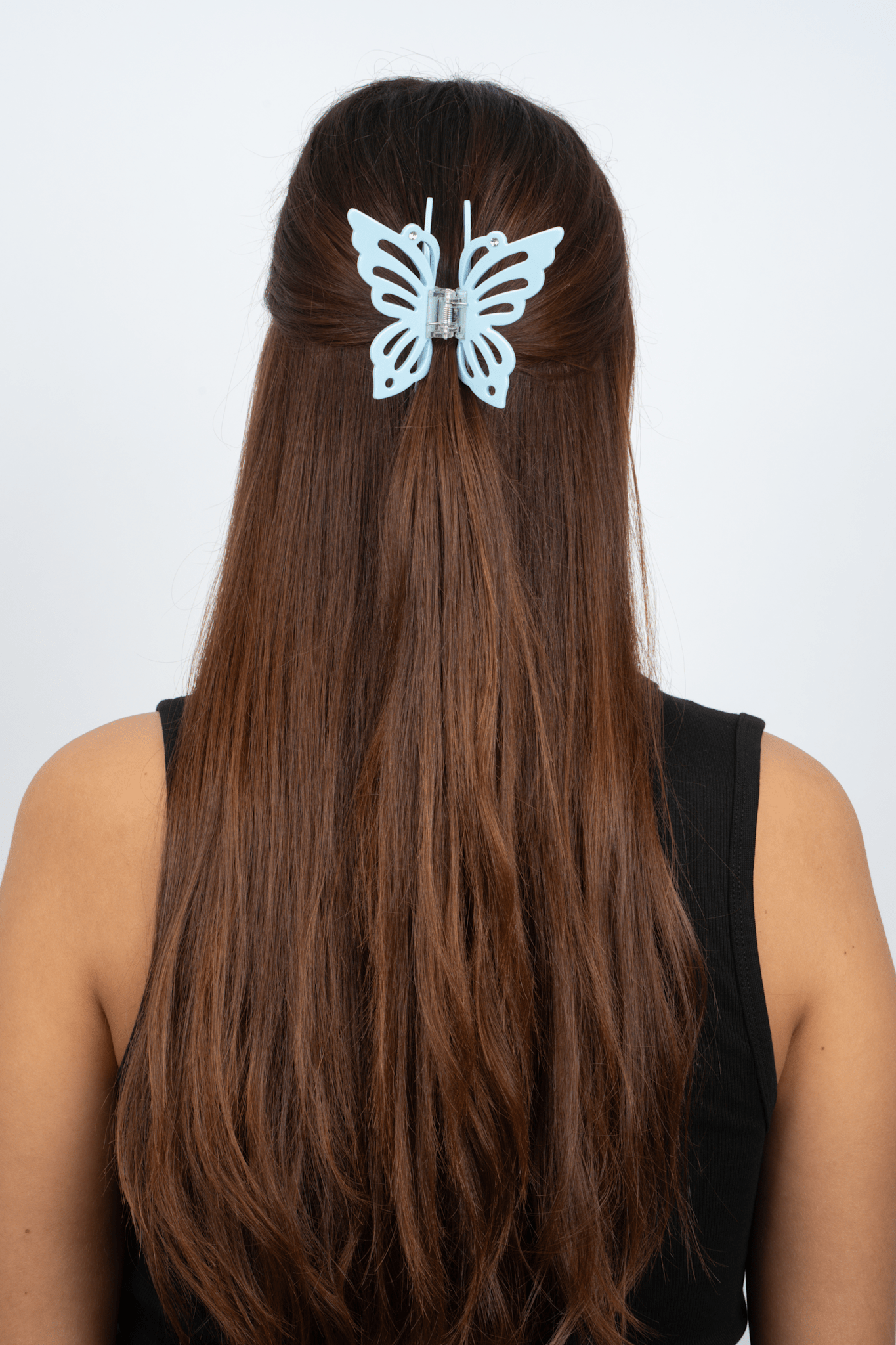 Butterfly Crystal Big i blå er en betagende hårklemme, der kombinerer et legende sommerfugledesign med funklende krystaldetaljer. Den smukke blå farve tilføjer et friskt og livligt touch til din frisure - perfekt til at give dit look et farverigt pift 🦋☁️
