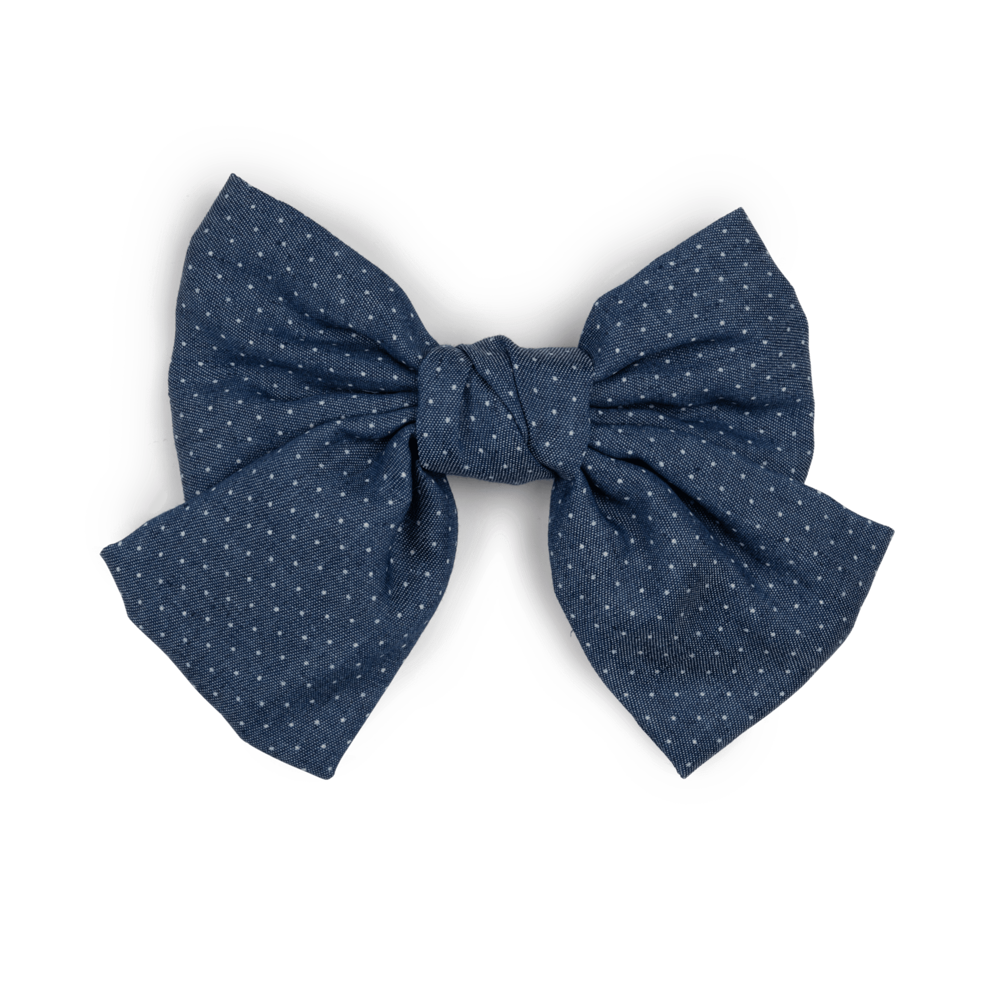 Giv dit look et afslappet twist med vores Denim Bow - en stor, blød hårsløjfe i klassisk denim med fine prikker. Perfekt til dig, der elsker et casual udtryk med et feminint strejf. Brug den til at pifte en hverdagsfrisure op eller som et sødt statement til festlige anledninger 💙