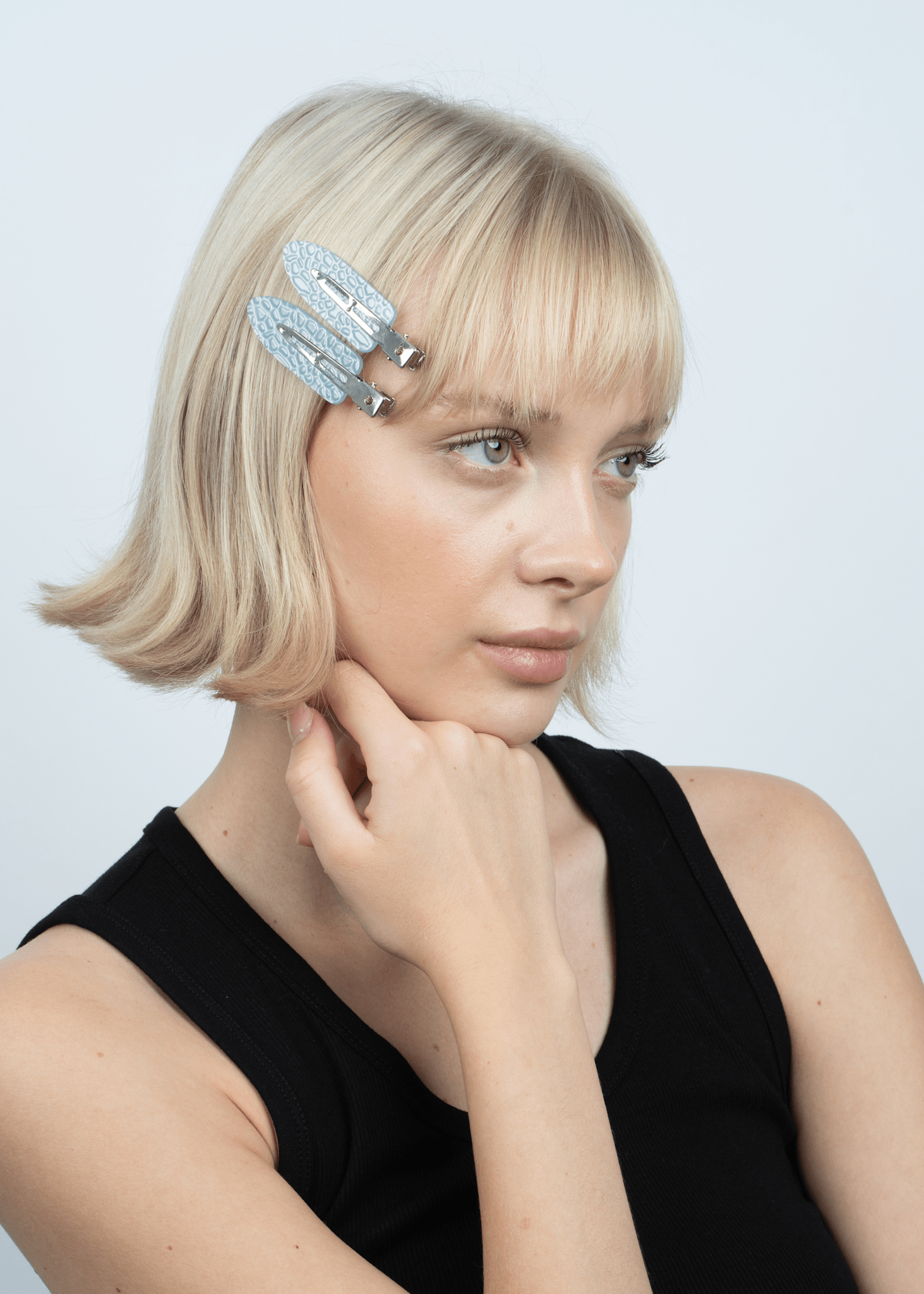Med Elizabeth Clips i Light Blue får du to alsidige hårspænder, der både er praktiske og stilfulde - perfekte til at give din frisure et roligt og elegant udtryk.