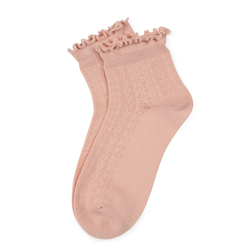 Emma Ankle Socks i lyserød kombinerer blød komfort med et romantisk udtryk. De fine blondedetaljer og feminine bølgekant tilføjer et legende touch til dit outfit, mens den bløde lyserøde nuance fremhæver strømpernes sarte og drømmende vibe. Perfekte som en sød og synlig detalje i dit look 🌸