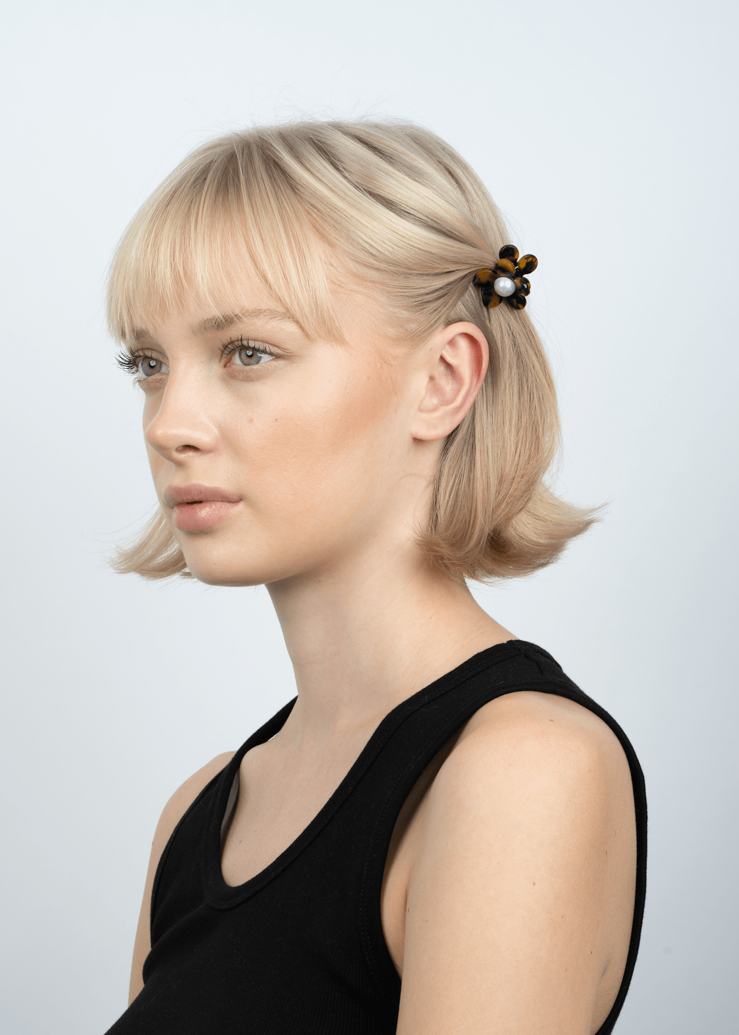 Brug Eva Classic Flower Mini til at holde små hårtotter væk fra ansigtet eller som en fin detalje i en opsat frisure. Klemmen sidder godt i håret og føles behagelig hele dagen.