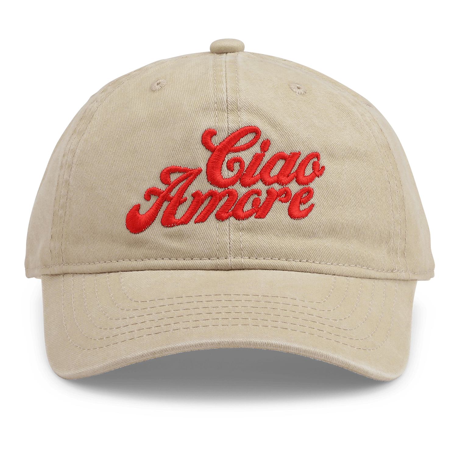 Everyday Italia Cap i beige er et stilrent statement-piece, der kombinerer italiensk charme med en afslappet attitude. Det broderede Ciao Amore-logo giver et personligt og trendy udtryk, mens den vintagevaskede finish tilfører en cool, afslappet vibe 🇮🇹