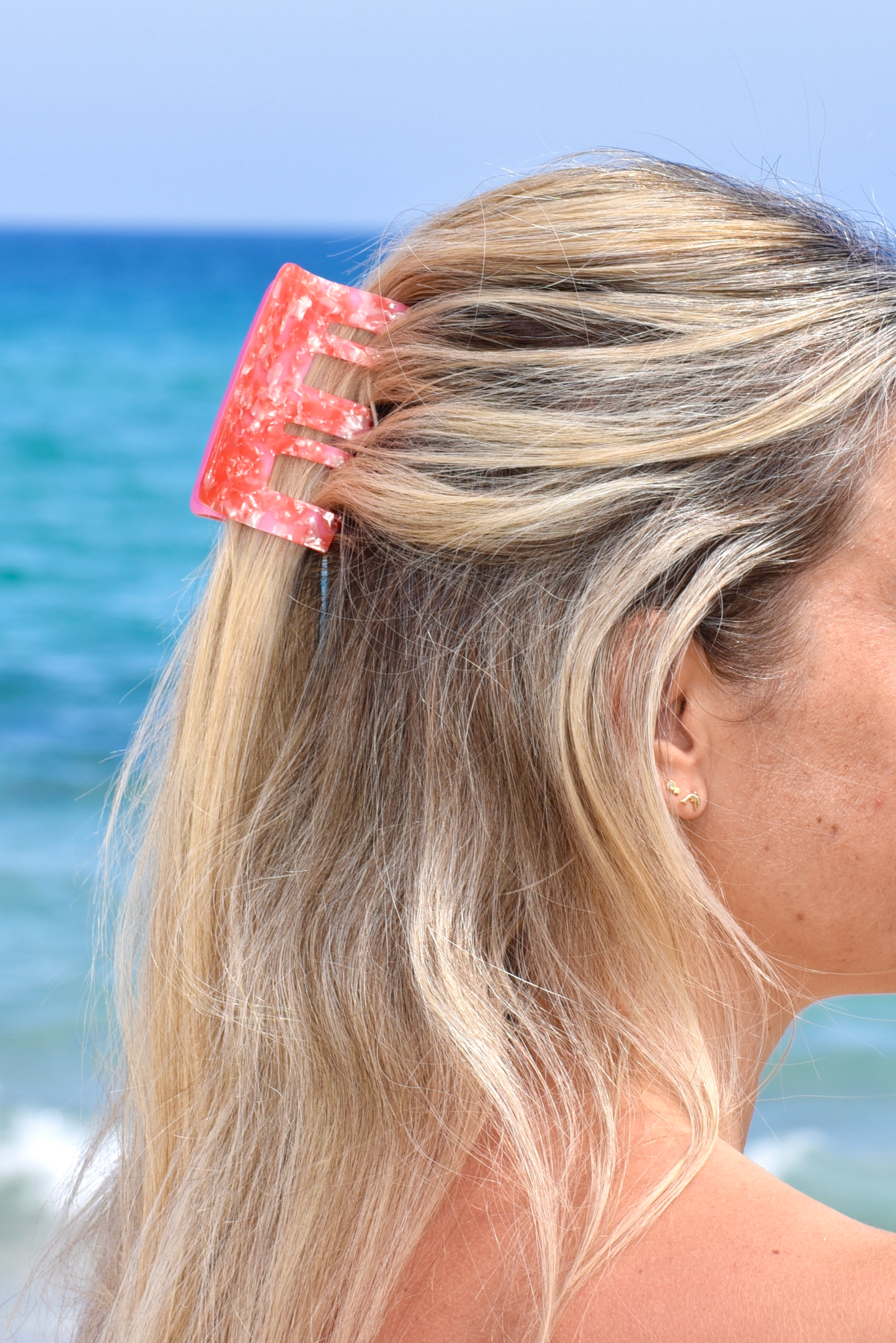 Denne oversized klemme giver maksimal hold til langt eller kraftigt hår. Brug den til en afslappet opsætning på varme dage, som et farverigt twist til din hverdag eller når du bare vil føle dig lidt ekstra lækker.