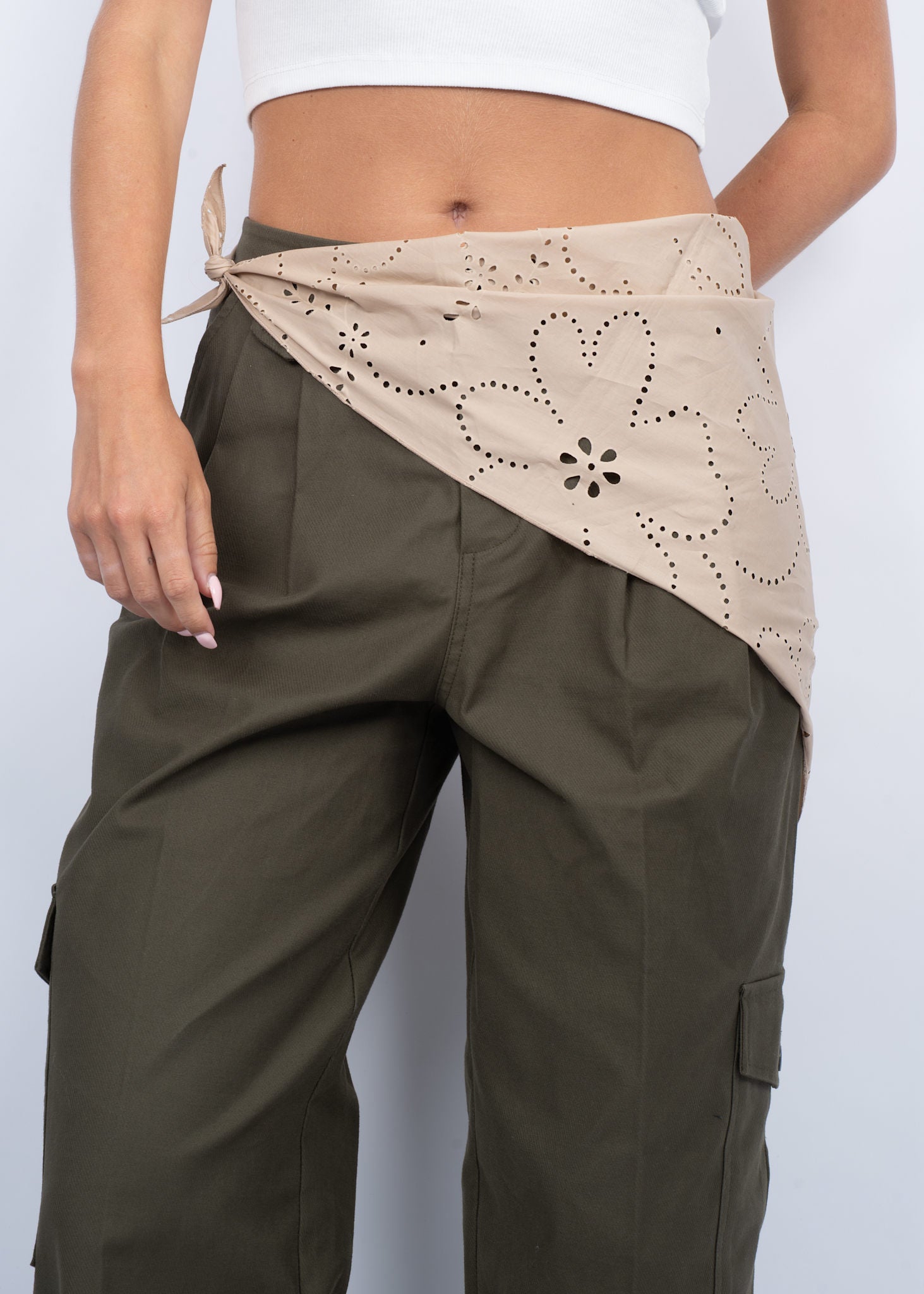 Floral Broderie Bandana Scarf i Salted Caramel er et varmt og klassisk tørklæde med fine blondedetaljer og broderier i smuk, brunlig nuance 🍯🌞