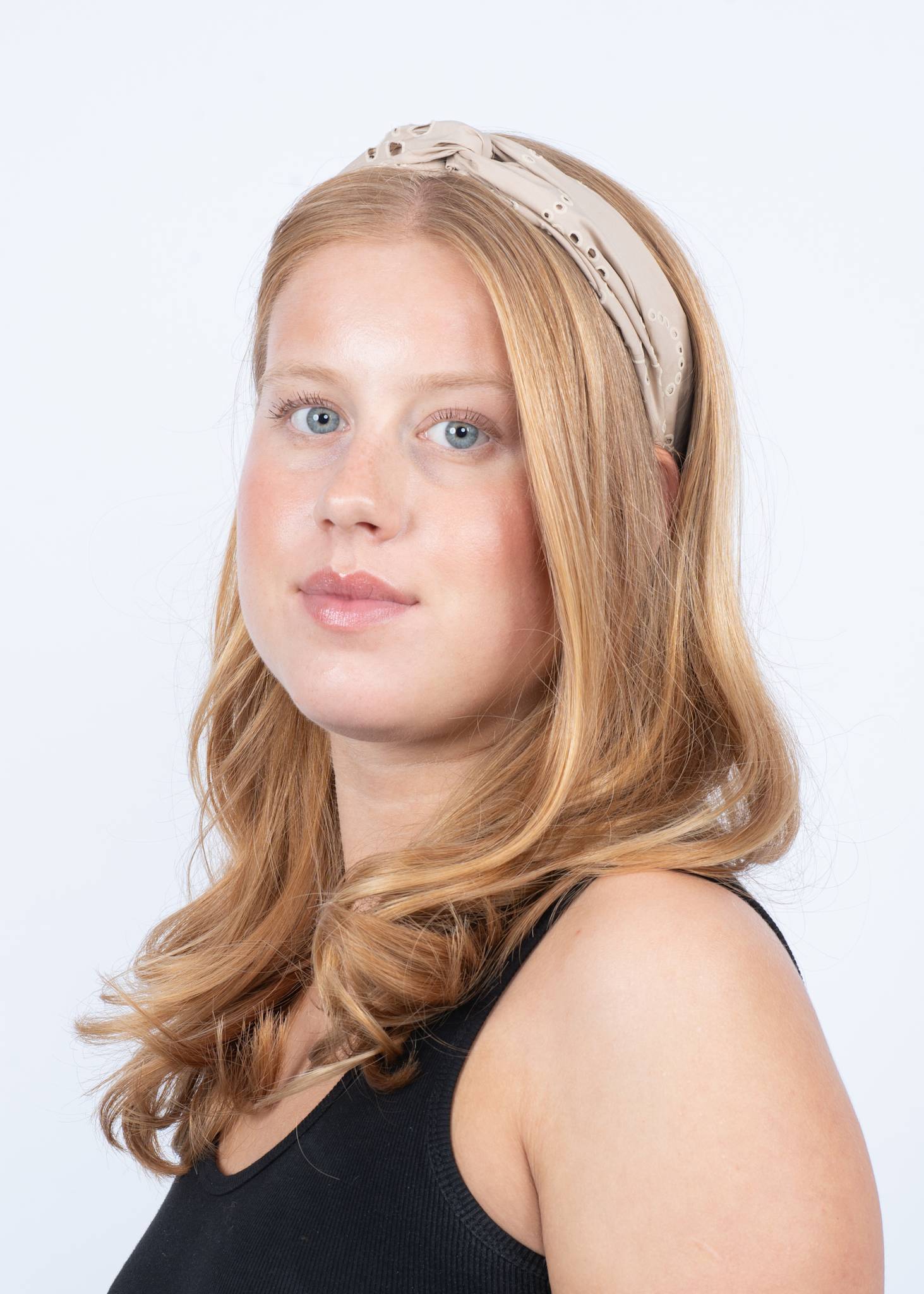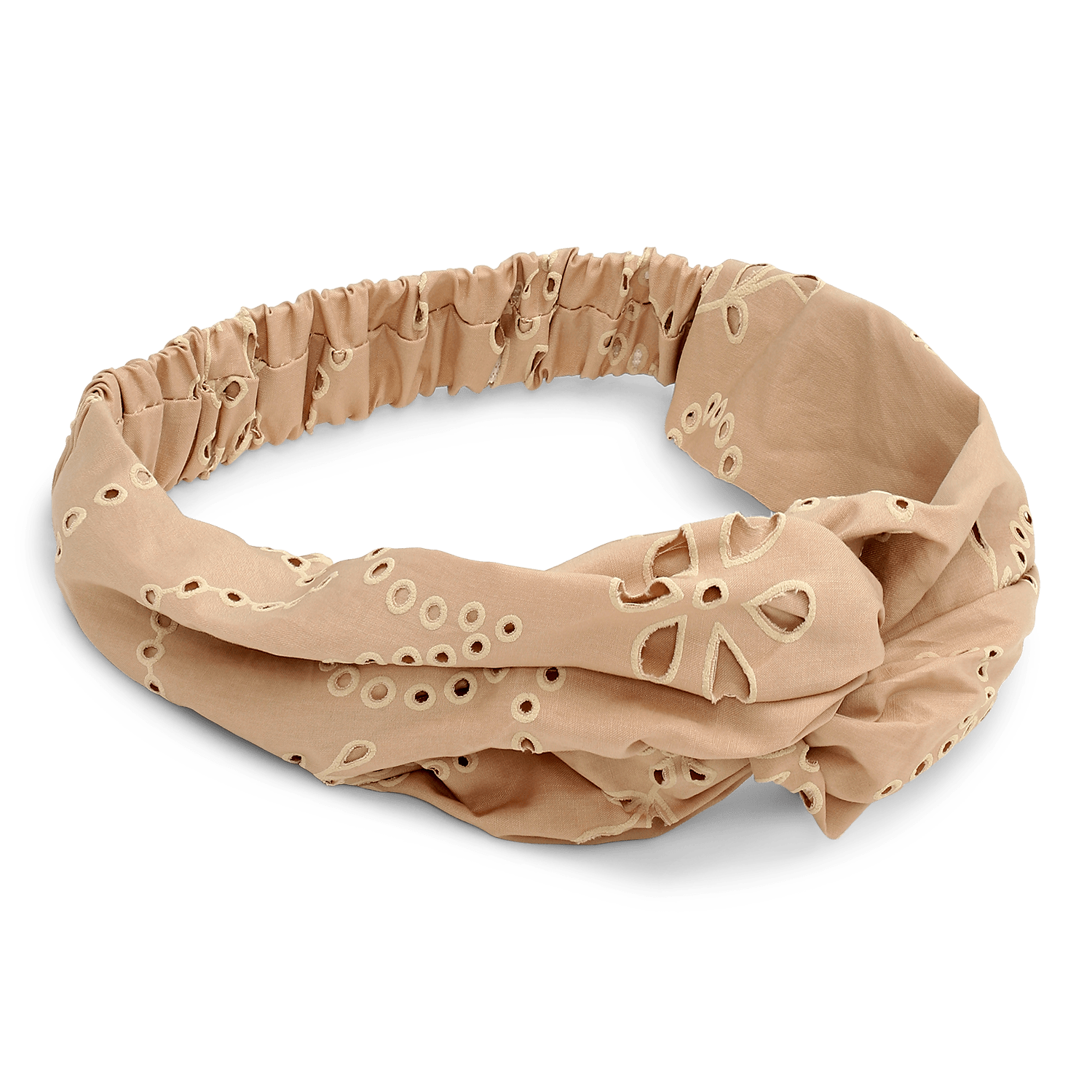 Floral Broderie Twist Headband i Salted Caramel er et vintage-inspireret hårbånd i varm brun med fine broderede detaljer 🍯🤎