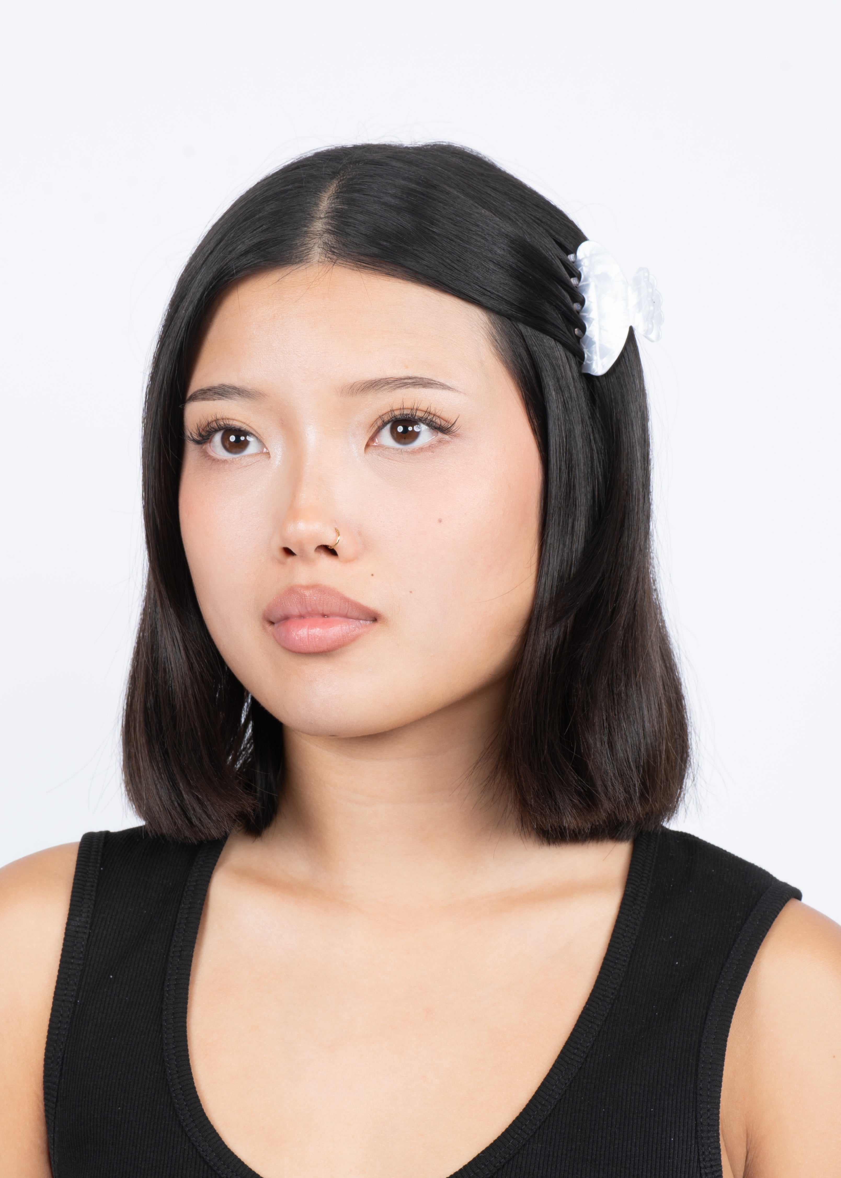 Helle Eggstra Mini White – en lille hårklemme i hvid nuance med et mønster, der skaber struktur og dybde. Komposition: Acetate.