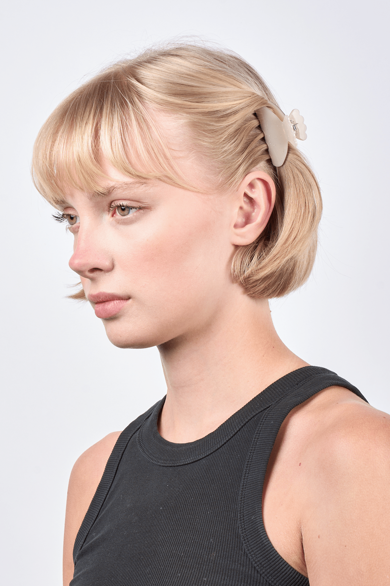 Brug den til at holde små sektioner af håret på plads eller som en elegant detalje i en opsætning. Den cremede farve og fine glimmer tilfører et klassisk og stilrent touch til din frisure.