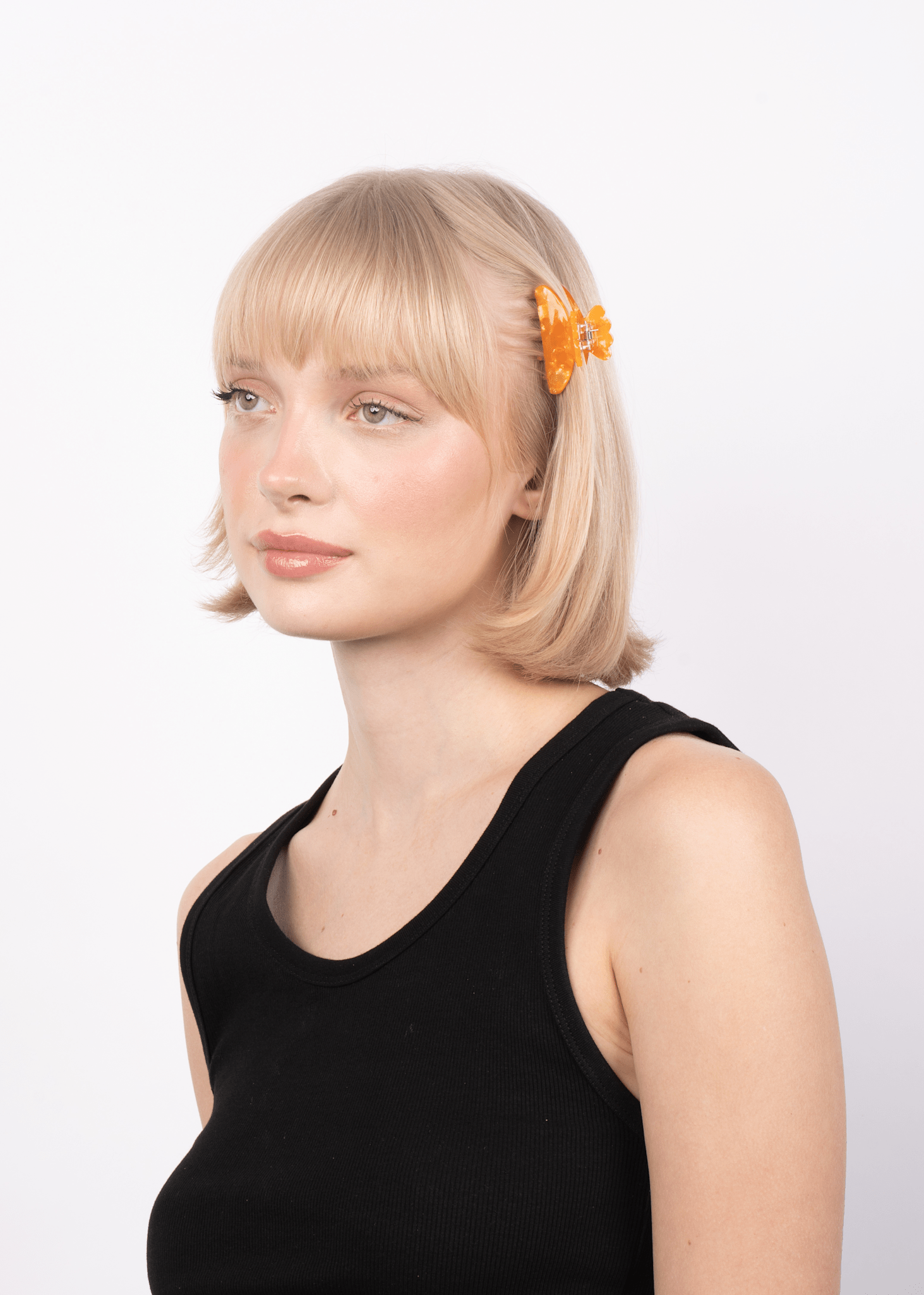 Helle Valeria Mini – lille orange hårklemme med et legende look.