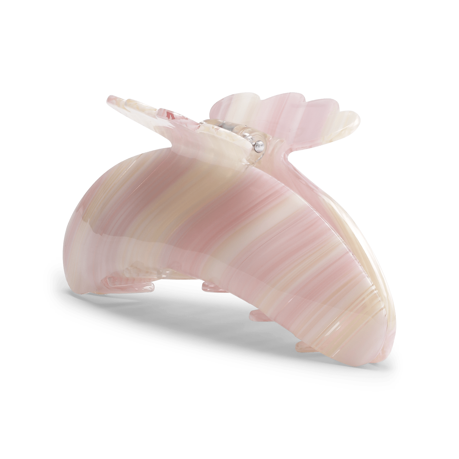 Helle Viola Biggest i rosa er den perfekte hårklemme til dig, der ønsker både stil og funktionalitet. Med sit elegante marmorerede mønster og bløde nuancer giver den et feminint touch til enhver frisure 💕