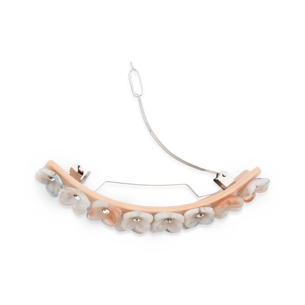 I Can Buy Myself Flowers Clip kommer nu i en ny, nedtonet og elegant farvekombination, der kombinerer bløde nuancer med fine blomster og glitrende rhinsten. Det er det ultimative mix af romantik og legesyge - lige til at klipse i håret, når du vil tilføje et feminint touch til dit outfit 🌸