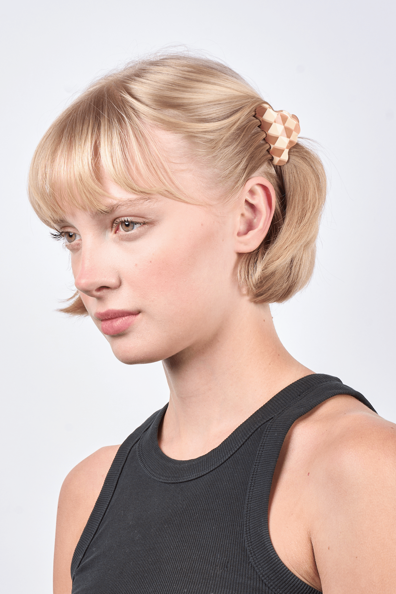 Lene Checkered Mini fra SUI AVA – lille hårklemme med et stilfuldt ternet design, ideel til at tilføje et moderne og elegant touch til dine frisurer.