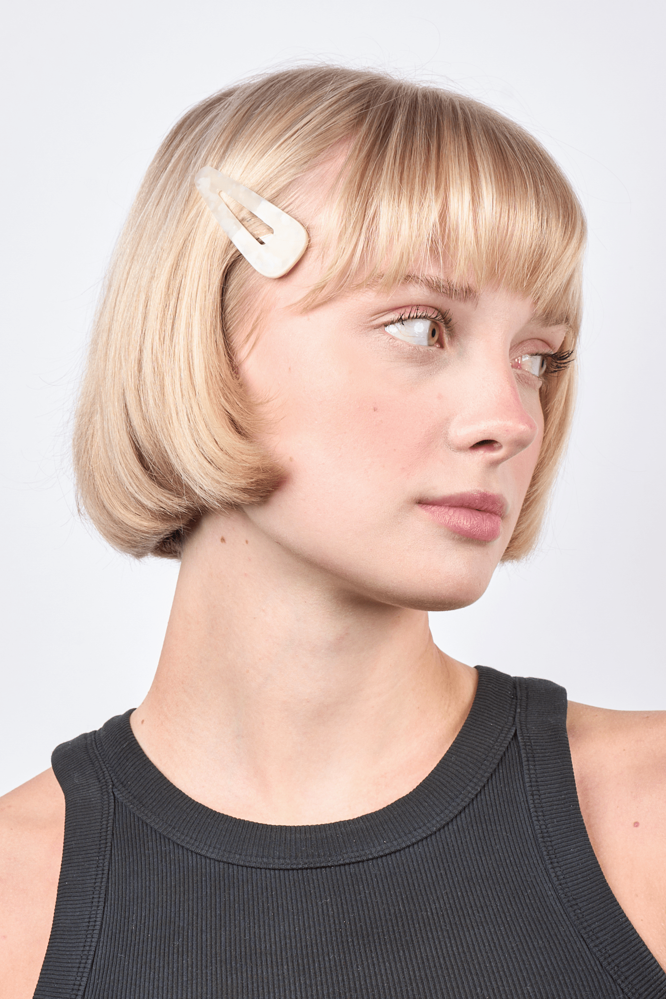Milky Buckle Clip er ideel til at samle mindre sektioner af håret eller til at tilføje en stilren detalje til din frisure. Brug den til at holde håret væk fra ansigtet eller som en smart detalje i både løst og opsat hår.
