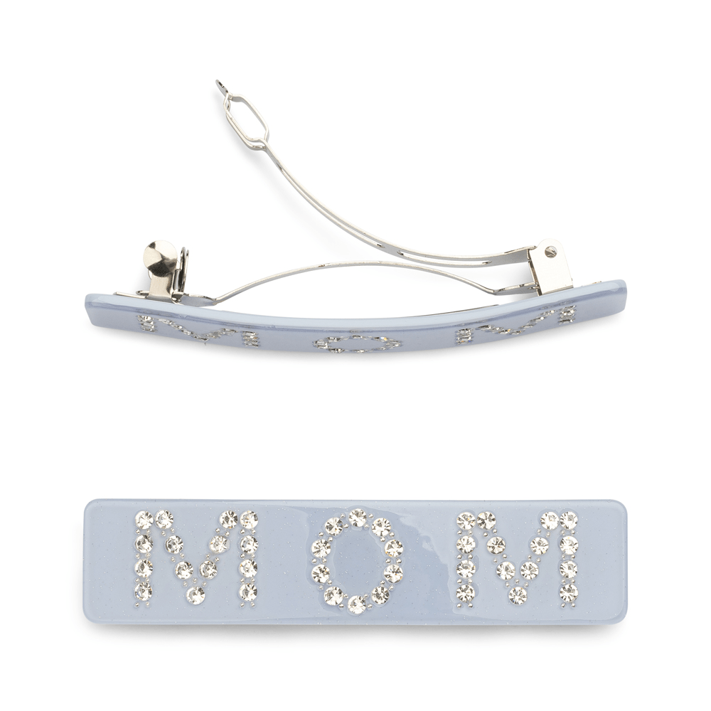 Giv et lille, kærligt statement med vores MOM Text Clip i blågrå. Det elegante hårspænde kombinerer et stilrent design med funklende krystaller, der staver M-O-M - en enkel og stærk hyldest til mødre overalt 🩵