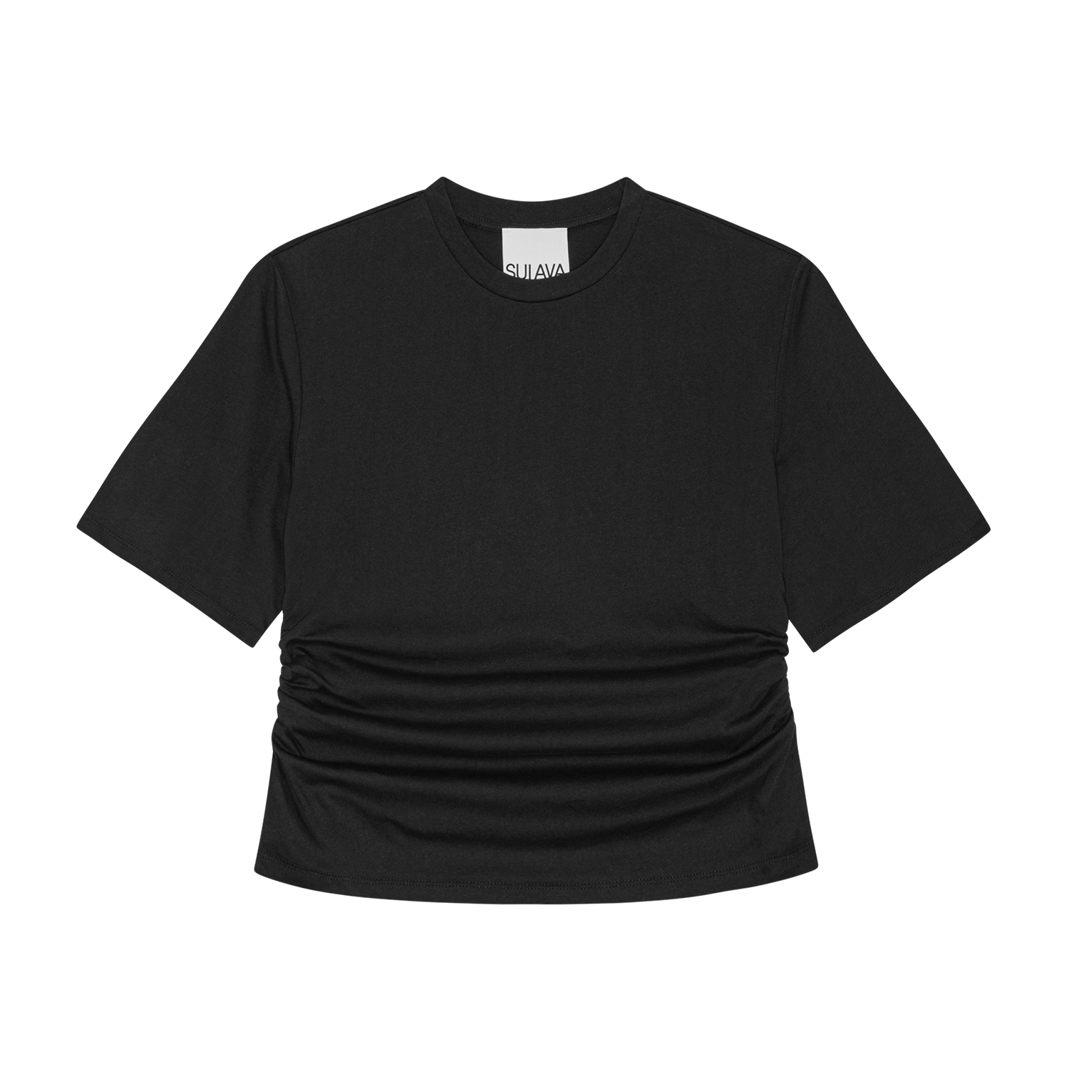 Ruched Tee er en blød og behagelig t-shirt i 100% bomuld med et moderne twist. Rynkedetaljerne i siderne skaber en flatterende pasform, mens det enkle design gør den nem at bruge til både afslappede og pænere outfits 🖤