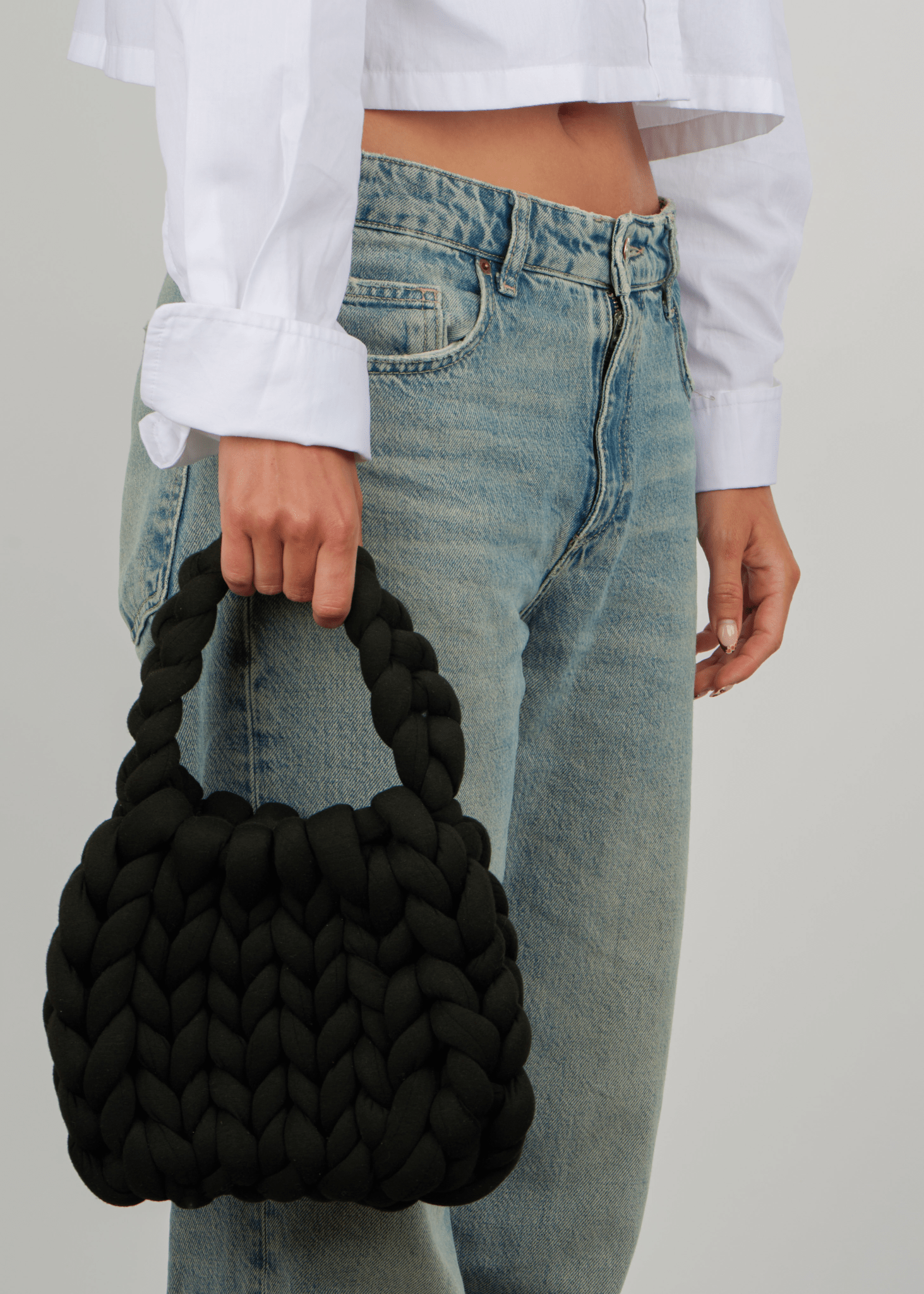 Sally Braided Bag i sort er som en kæmpe krammer i taskeform. Den er lavet i blødt, chunky flet og har en lækker, voluminøs struktur, der både føles hyggelig og ser cool ud. Den dybe sorte farve gør den nem at matche med stort set alt i garderoben - fra afslappede jeans til kjoler og støvler 🖤