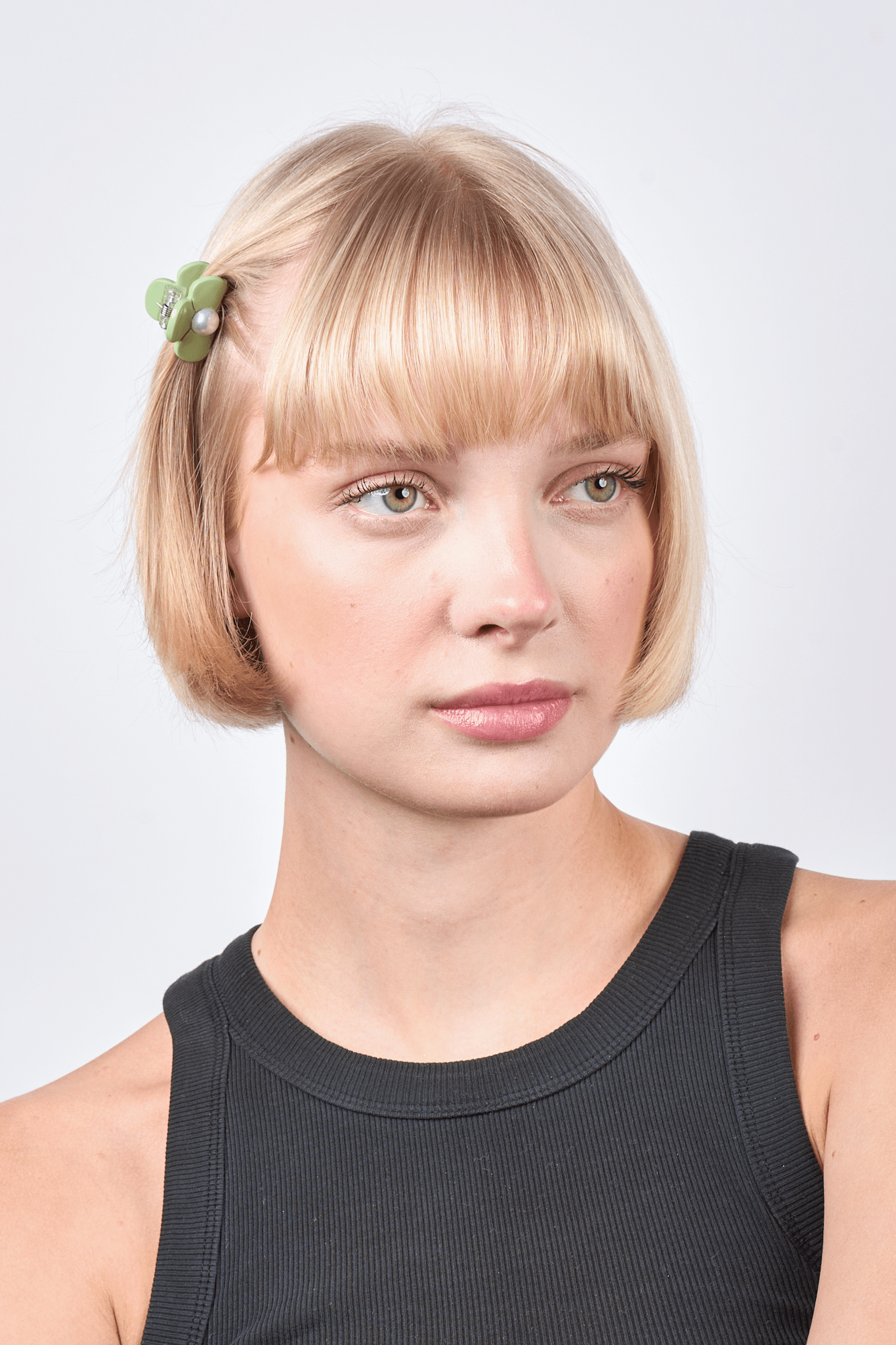 Three-leaf Clover Pearly Mini fra SUI AVA – lille hårclip i en elegant grøn nuance med trekløverdesign og perledetaljer, perfekt til at tilføje et naturligt og stilfuldt touch til dine frisurer.